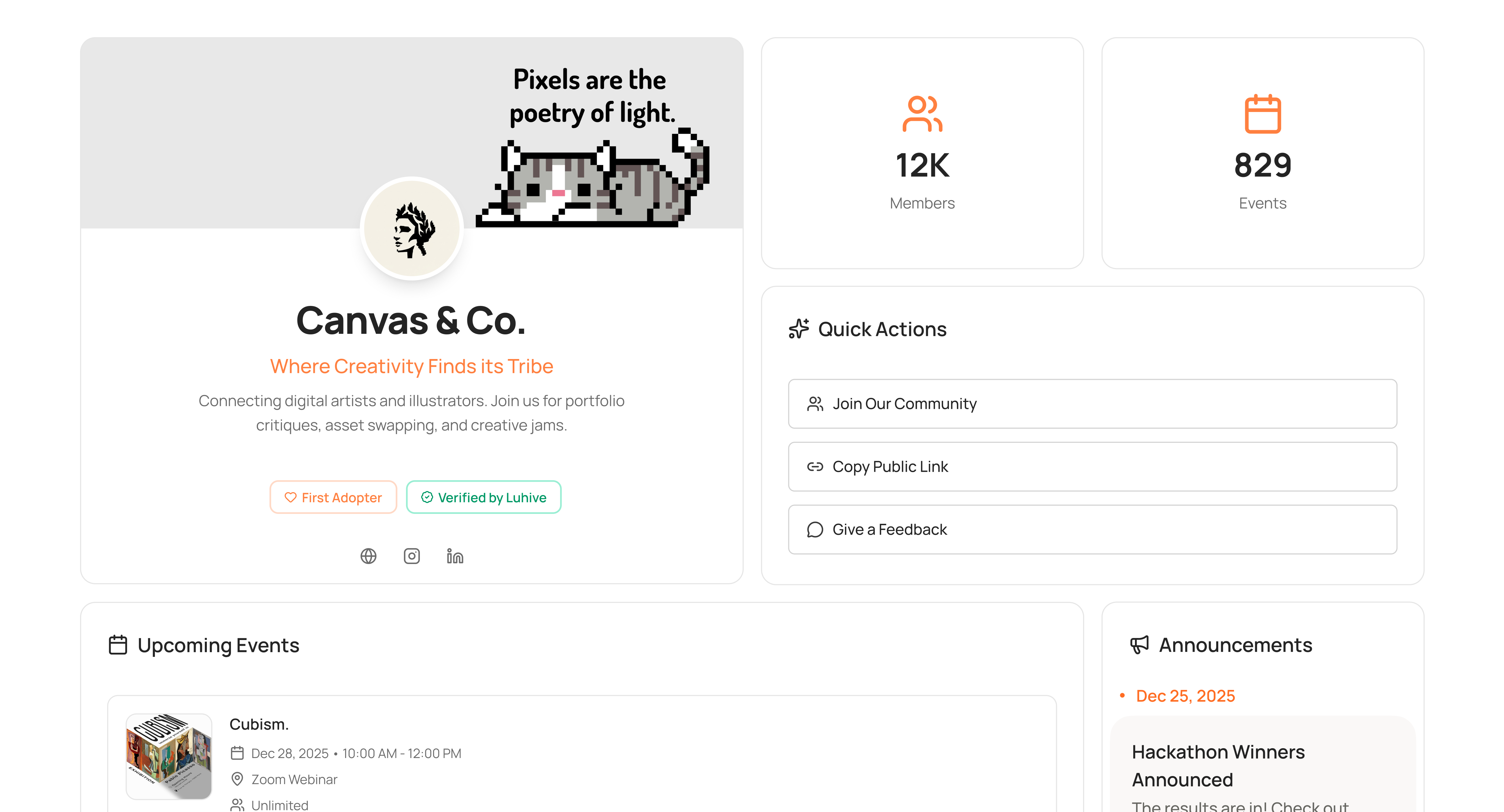 Unify your data, events, and announcements. Finally, a single source of truth for your community.